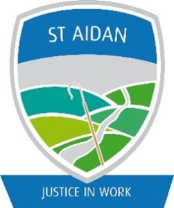 The crest for Aidan House is the staff behind which a road disappears amongst a pastoral landscape. This reflects how Aidan walked all over Northumbria converting people to Christianity. An Irishman invited by St Oswald to the region, he was a man of just and gentle temperament. He is seen now as `the apostle to the English’ and the beginning of the strong link between Ireland and Catholicism in England that is still strong today. The motto for St Aidan House is “Justice In Work” which fits with the just character of the saint and extolls the virtue of justice. This virtue is something we seek to establish in the character of all students at Cardinal Hume Catholic School so that in all their work, both in school and beyond, a sense of justice and achievement underlies all that they do.